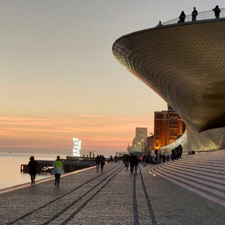 A striking riverside monument celebrating Portuguese explorers who helped chart the globe.